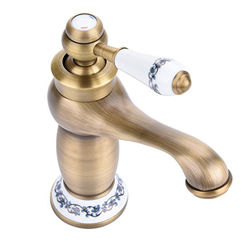 Questo antico rubinetto per lavabo da bagno è realizzato in ottone massiccio di alta qualità con ornamento a motivi floreali, è resistente, resistente alla corrosione, antiruggine ed elegante per un lungo periodo di servizio