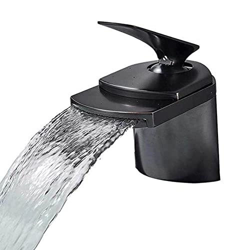 FW Rubinetto Bagno Cascata, Elegant Nero Miscelatore Monocomando Lavabo Bagno Moderno Ottone Rubinetto Bagno Lavabo, Regolazione A Caldo E Freddo Rubinetto Bidet, Valvola in Ceramica