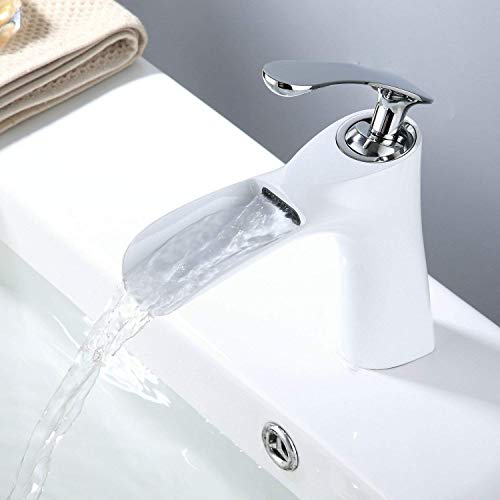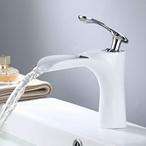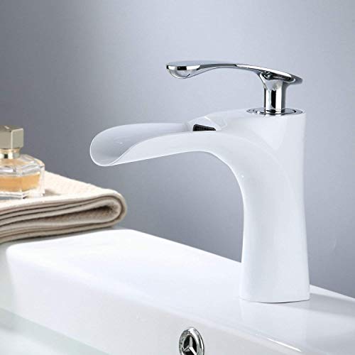 Rubinetto Bagno Cascata Rubinetto Lavabo, Bianca & Cromo