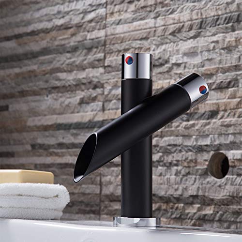 Rubinetto Bagno Cascata, Rubinetto Bagno Lavabo, Moderno Nero Ottone Rubinetto Lavabo, Acqua Calda E Fredda Disponibile, Miscelatore Monocomando, Per Bagno o Avabo Bagno, Con Valvola In Ceramica