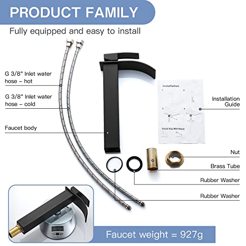 Rubinetto Bagno Cascata Nero, kisimixer Miscelatore Lavabo Bagno, Rubinetto Bagno Lavabo Alto con altezza bocca 235mm, Miscelatore Monocomando per Bagno Può Regolazione a Caldo e Freddo G3/8