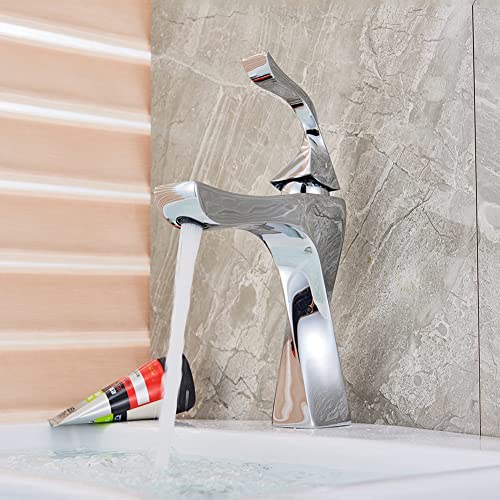 FW Rubinetto Bagno, Elegant Miscelatore Monocomando Lavabo Bagno Moderno Ottone Rubinetto Bagno Lavabo, Regolazione A Caldo E Freddo Rubinetto Bidet, Valvola in Ceramica, Cromato