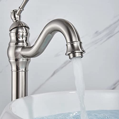 FW Rubinetto Bagno, Girevole 360 ° Miscelatore Monocomando Lavabo Bagno Antico Ottone Rubinetto Bagno Lavabo, Regolazione A Caldo E Freddo Rubinetto Bidet, Valvola in Ceramica, Spazzolato