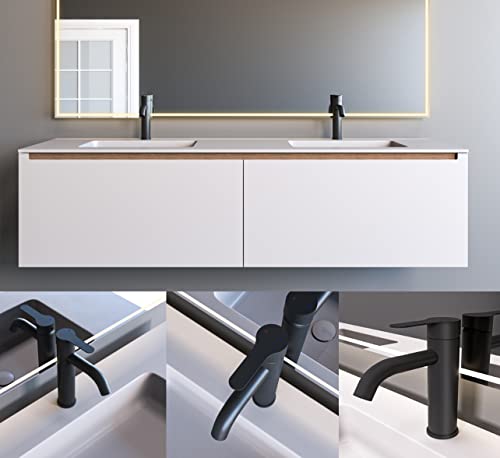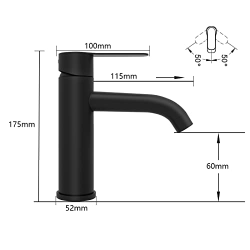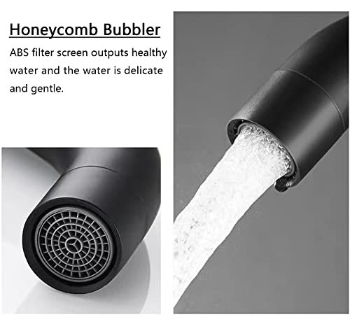 Rubinetto Bagno Lavabo Aoufottes, per Miscelatore Lavabo Alto e Lavandino Bagno, e Fredda e Calda Regolabile Rubinetto, Miscelatore Bagno con Funzione di Risparmio Idrico, Nero Rrubinetto per Lavabo.