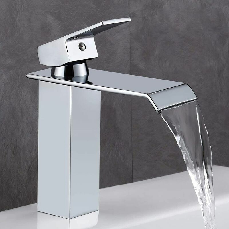 Rubinetto per bagno, rubinetto per lavabo dal design moderno a cascata, corpo in metallo resistente, metallo cromato di alta qualità, acqua calda e fredda regolabile