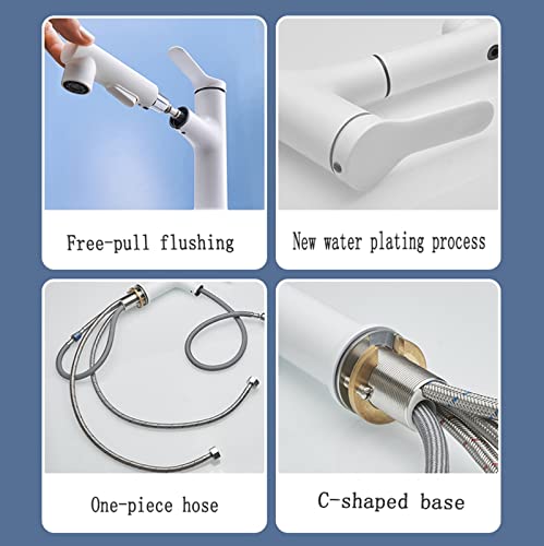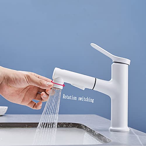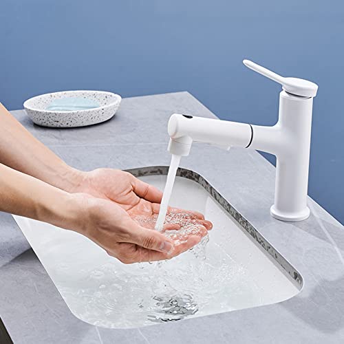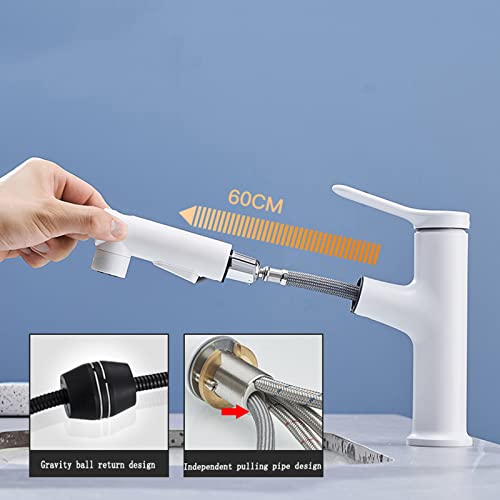 Rubinetto Bagno Lavabo con Doccetta Estraibile Rubinetto Lavabo Bagno con Doccetta Estraibile Caldo E Freddo,Bianco