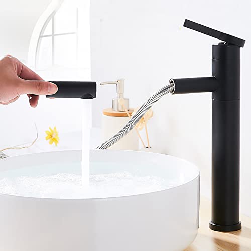 Rubinetto bagno lavabo con doccetta estraibile Caldo E Freddo Girevole Monocomando Rubinetti bagno estraibile Multifunzionale miscelatore per lavabo Per Bagno,nero Alto
