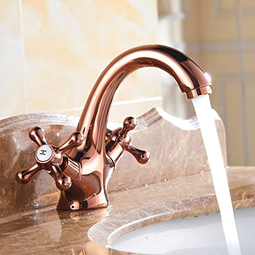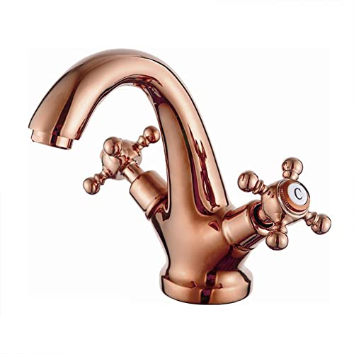 Rubinetto Bagno Lavabo Doppia Leva Miscelatore Lavabo Bagno Stile Antico Vintage Ottone Rubinetto Bagno, Acqua Calda E Fredda Disponibile, Valvola In Ceramica