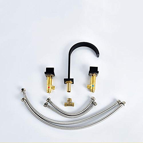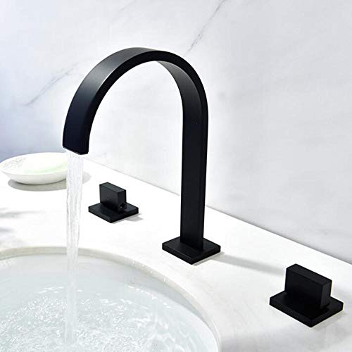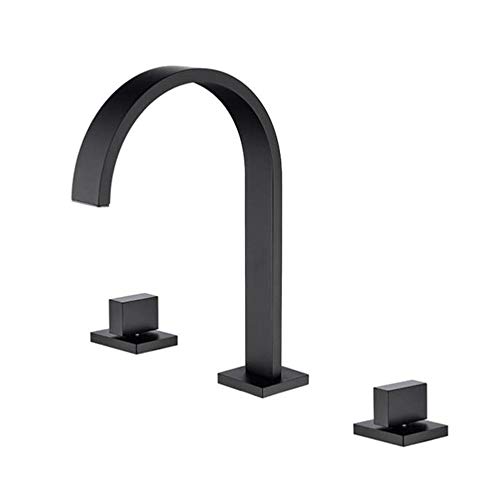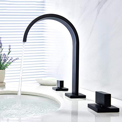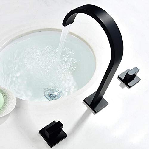 Rubinetto Bagno Lavabo 3 Fori Ottone Rubinetto Lavabo Cascata Caldo e Freddo Doppia Maniglia Rubinetto Lavabo Bagno-Nero