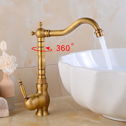 Rubinetto Bagno Lavabo Monocomando Alto Miscelatore Lavabo Bagno Girevole A 360° Stile Antico Vintage Ottone Rubinetto Bagno, Acqua Calda E Fredda Disponibile, Valvola In Ceramica