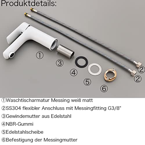 ● Rubinetto lavabo, facile da installare: tubo di collegamento standard da 3/8" 40 cm.