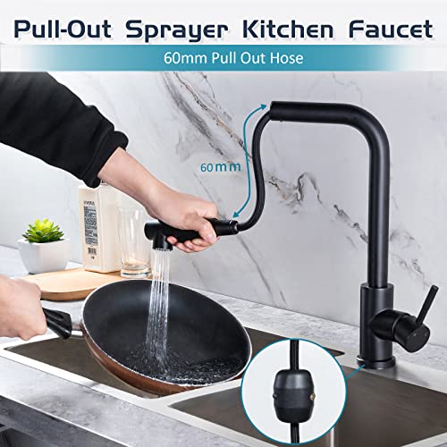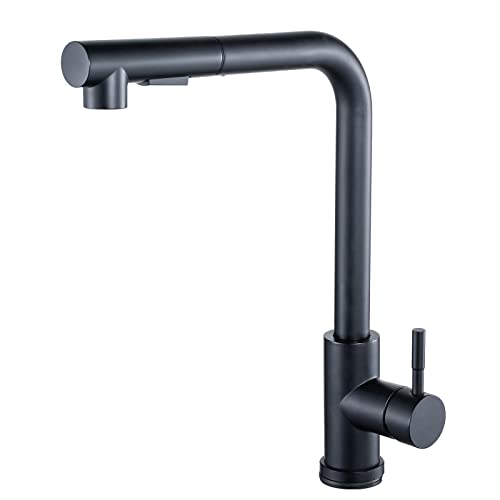Rubinetto della cucina AOLALA rubinetto della cucina con doccia estraibile Matt Black in acciaio inossidabile rubinetto del miscelatore 2 tipi di spruzzo singolo mano lavello rubinetto