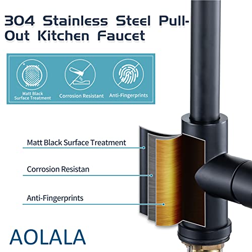 Acciaio inossidabile e nero opaco AOLALA rubinetto cucina è realizzato in acciaio inossidabile di alta qualità, stente alla corrosione e non facile da ruggine. La superficie nera opaca rende il rubinetto anti-impronte e la superficie è liscia e facile da pulire.