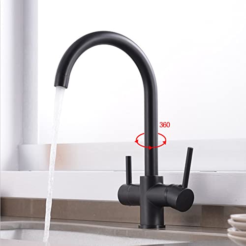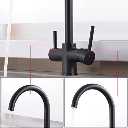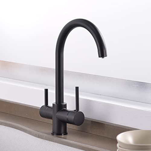 Rubinetto Cucina 3 Vie per Depuratore Miscelatore Cucina Nero Rubinetto a Tre Vie Cucina per Depuratore Miscelatori da Cucina Doppia Maniglia A