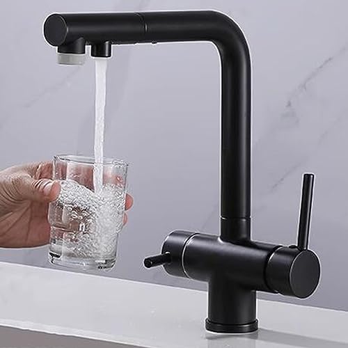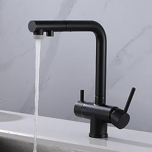 Rubinetto Cucina 3 Vie con Doccetta Estraibile Girevole In Ottone Multifunzione Rubinetto Miscelatore Tre Vie da Cucina-Nero