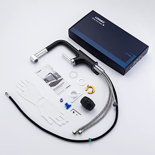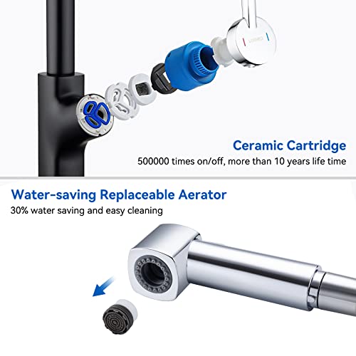Rubinetto Cucina con Doccetta Estraibile, Lonheo Miscelatore Cucina Nero Senza Piombo, Rubinetti Lavello Cucina Girevole a 360° con Doccia per Cucina, Bar, Campeggio e Lavanderia