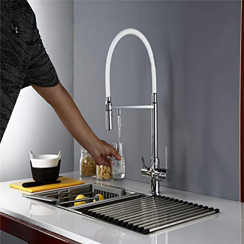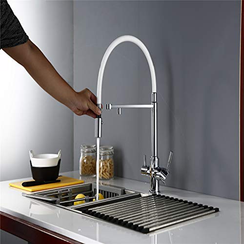 Rubinetto da cucina Con Doccetta Estraibile, Ottone Rubinetti per lavelli da Cucina 3 Vie Acqua Pulita Rubinetto cucina Con Spruzzatore, Girevole Pull Down Rubinetti da cucina Caldo e Freddo,Bianca