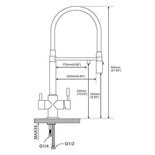 Necessità di installazione da soli: è possibile completare l'installazione da soli senza troppo tempo, maniglia a leva a doppia maniglia Il rubinetto della cucina è convenientemente realizzato per consentire un controllo senza sforzo della temperatura e del volume dell'acqua.