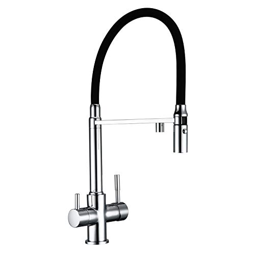 Rubinetto da cucina Con Doccetta Estraibile, Ottone Rubinetti per lavelli da Cucina 3 Vie Acqua Pulita Rubinetto cucina Con Spruzzatore, Girevole Pull Down Rubinetti da cucina Caldo e Freddo,Nero