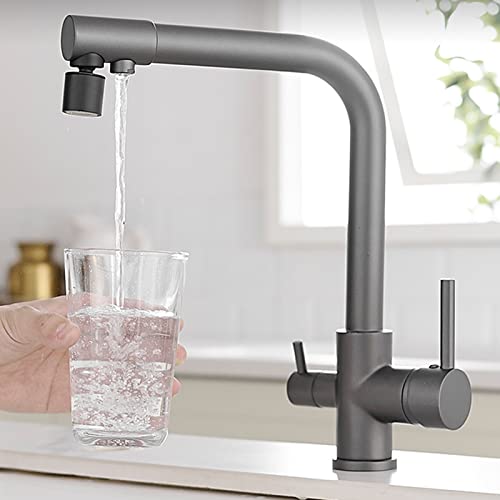 Rubinetto 3 Vie Cucina, Miscelatore Cucina 3 Vie Grigio Rubinetto Lavabo Ottone Acqua Fredda e Calda Acqua Filtrata Rubinetto da Cucina Tre Vie
