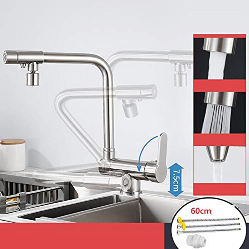 Rubinetto Cucina 3 Vie Miscelatore Cucina Pieghevole Sottofinestra Acqua Potabile Osmosi 360° Girevole Rubinetto Per Cucina-Spazzolato
