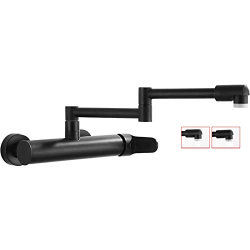 Rubinetto cucina a muro Rubinetto da cucina, lavello, lavello, rotazione, pieghevole, tutto in rame, rubinetto a parete caldo e freddo-nero
