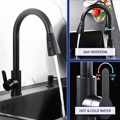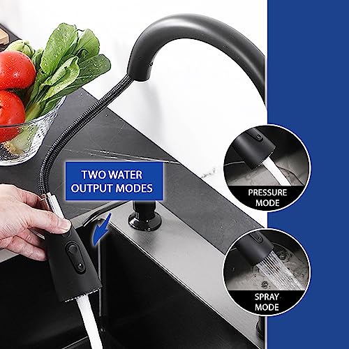 FINITURA SQUISITA Il nostro rubinetto cucina nero con doccetta estraibile ha una classica finitura nera in acciaio inox ed è costruito per resistere ai graffi quotidiani, alla corrosione e all'appannamento, garantendo qualità e longevità. Il nostro rubinetto lavello cucina nero con doccetta estraibile resiste alle impronte digitali e alle macchie d'acqua per offrire una cucina dall'aspetto più pulito.