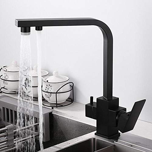 Rubinetto Cucina 3 Vie Nero Osmosi Miscelatore Cucina Ottone Acqua Calda e Fredda Pura Rubinetto Lavello da Cucina Potabile Diretto Rubinetto Filtrato-A