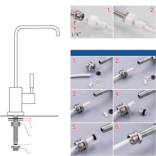 rubinetto che consente anche di risparmiare acqua in una certa misura. Ampiamente usato in cucine, bagni, con accessori di montaggio, facile da installare.Depuratore Acqua Depurata Osmosi nversa Attacco 1/2 "o 1/4" Pollice per tubo da 6.5-20 mm