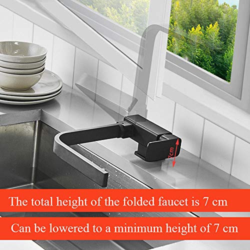 Rubinetto da Cucina Pieghevole Miscelatore Nero abbattibile Sottofinestra, Monocomando Calda e Fredda Ottone Girevole a 360 per Cucina Lavandino