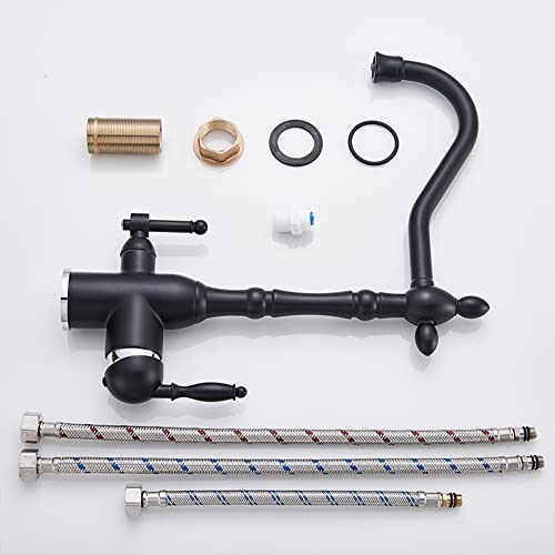 Rubinetto Per Cucina 3 Vie Per Sistemi Osmosi Doppia Leva Girevole A 360° Ottone Miscelatore Cucina Tre Vie Bocca Alta, Acqua Fredda E Calda Rubinetto Lavello Cucina, Vintage Anticato, Nero