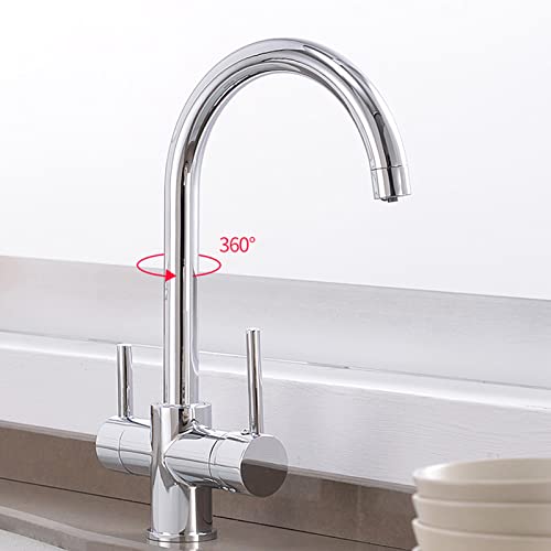 Rubinetto Cucina 3 Vie per Sistemi Osmosi Miscelatore 3 Vie Cucina Rubinetti per Lavelli da Cucina con Beccuccio Girevole a 360 ° Avena A
