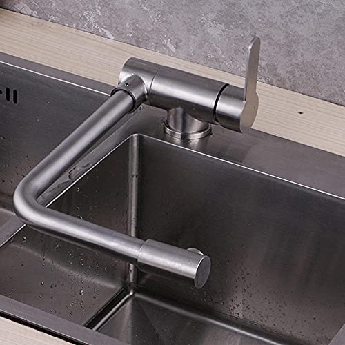 Rubinetto Cucina Sottofinestra Pieghevole Acciaio Inossidabile Spazzolato Acqua Calda e Fredda Girevole Foro Singolo Finestra Anti-Ingranaggio Miscelatore Lavello Cucina