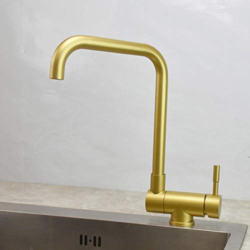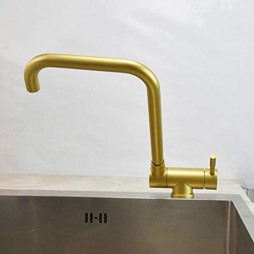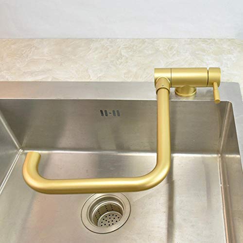 Rubinetto per cucina sottofinestra,Rubinetto Cucina Pieghevole, Girevole a 360 ° acqua calda e fredda spazzolato inox satinato dorato, miscelatore cucina sottofinestra
