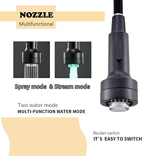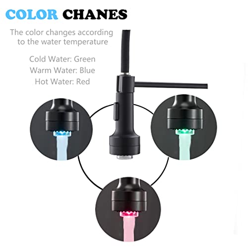Rubinetto cucina TIMACO LED nero con molla a spirale, rubinetto cucina rubinetti lavello girevoli a 360°, doccia estraibile - alta pressione