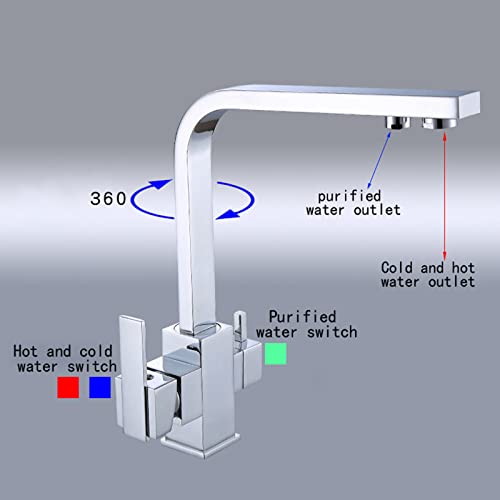 Rubinetto 3 Vie per Depuratore Miscelatori da Cucina Miscelatore 3 Vie Osmosi Rubinetti per Lavelli da Cucina Osmosi Inversa Acqua Potabile Cromo