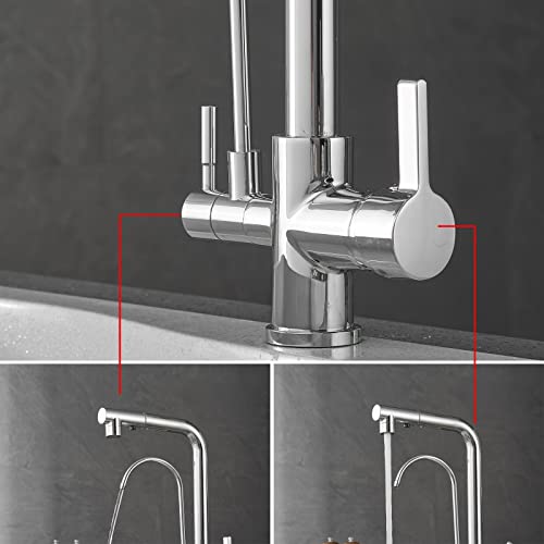 Rubinetto 3 Vie con Doccetta Estraibile Miscelatore Cucina 3 Vie Girevole a 360° per Depuratore Acqua Osmosi Inversa Rubinetto Tre Vie Cucina Nero