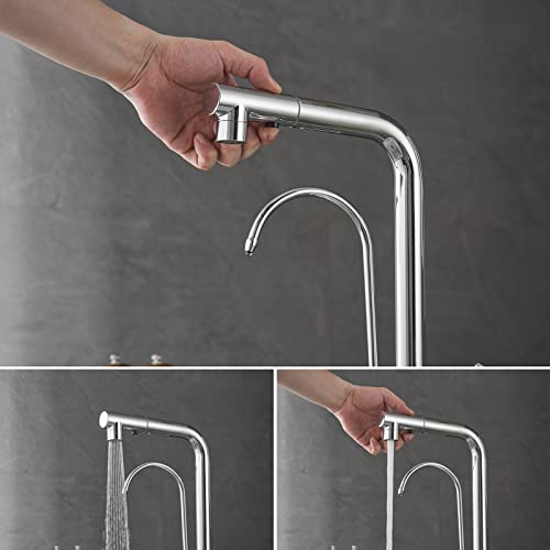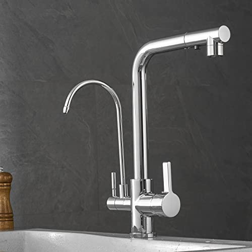 Rubinetto 3 Vie con Doccetta Estraibile Miscelatore Cucina 3 Vie Girevole a 360° per Depuratore Acqua Osmosi Inversa Rubinetto Tre Vie Cucina Spazzolato