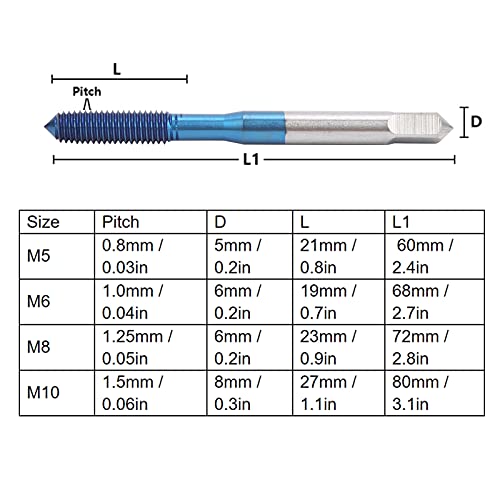Rubinetto Filettato, Nano Blue Coating Tungsten Steel Metric Machine Tap Manico Dritto Strumento di Maschiatura per la Riparazione di Biciclette, Assemblaggio di Mobili(M5)