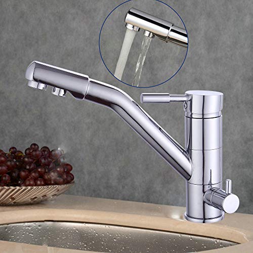 Rubinetto con filtro dell'acqua a 3 vie, rubinetto miscelatore per lavello da cucina, rubinetto miscelatore per lavabo in ottone, purificatore di acqua calda e fredda con doppie maniglie, cromato