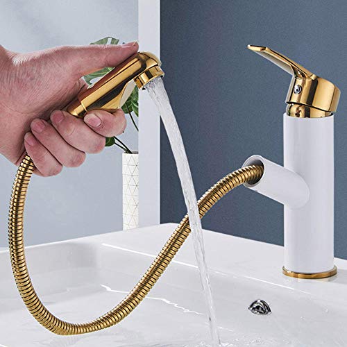 Rubinetto Lavabo Bagno Estraibile Rubinetti per Lavandini Bagno Rubinetto Lavabo Telescopico In Ottone Oro Bianco Caldo e Freddo Monoforo