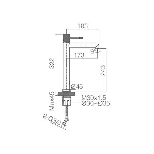 La rubinetteria viene fornita con tubi flessibili 3/8".