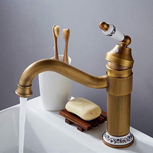 Rubinetto per Lavabo, Ottone Antico Porcellana Blu Antico Rubinetto Corto Girevole Vintage Miscelatore Caldo Miscelato Curvo Rubinetto Con Flessibile, Leva Girevole Bagno Bar Commerciale Miscelatore