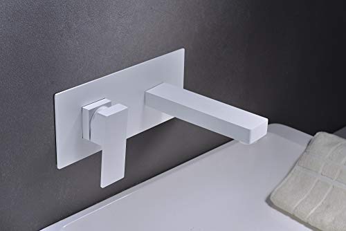Rubinetteria monocomando per lavabo o vasca da bagno, con montaggio a parete È realizzato in ottone e ha una finitura bianca opaca.