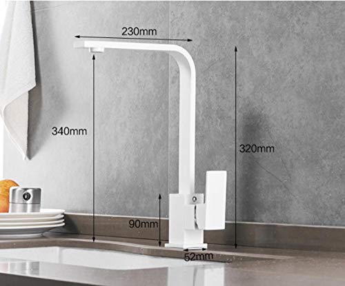 Rubinetto per Lavelli da Cucina Rubinetti per Lavandini Bagno Rubinetto Cucina Rubinetto Bianco Lavello da Cucina Lavello Rubinetto Caldo E Freddo Corpo in Rame Quadrato Rotante Lavello Lavello Rubi