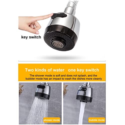 Materiali di alta qualità: Il rubinetto della cucina è realizzato in rame e acciaio inossidabile di alta qualità, che non arrugginisce o diventa nero. Dotato di un rubinetto a doppia funzione, premere il pulsante per regolare facilmente i diversi effetti dell'acqua. Acqua di ammollo: acqua morbida, acqua concentrata, acqua della doccia: forte spruzzabilità.