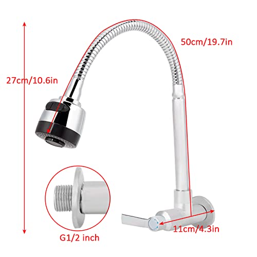 Rubinetto per lavello da cucina con maniglia singola, G1/2inch Cucina per uso domestico Rubinetto per montaggio a parete girevole a 360 ° con acqua fredda per uso domestico
