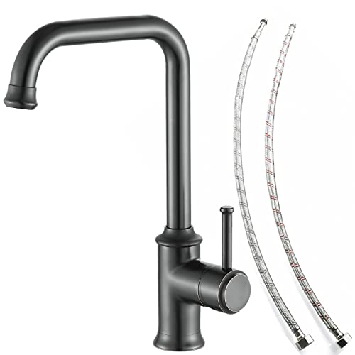 Rubinetto per lavello da cucina moderno Rubinetto da cucina monocomando girevole a 360° in ottone anticato, rubinetti da cucina commerciali di facile installazione, bronzo lucidato a olio, Leekayer