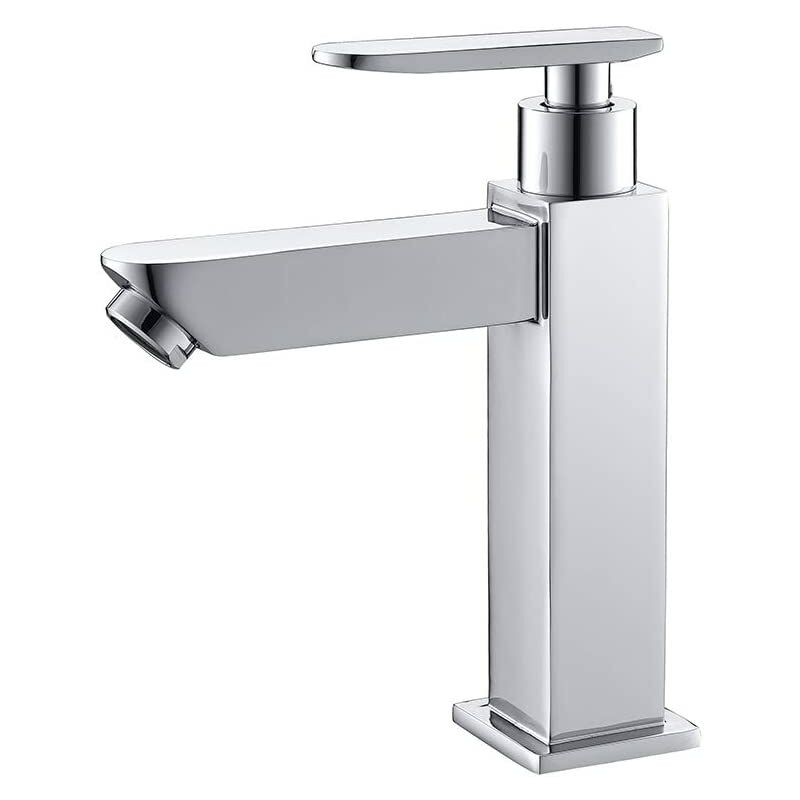 Design moderno e semplice, questo miscelatore si sposa perfettamente con tutti gli stili di architettura d'interni. Rubinetto acqua fredda singolo per lavabo, ha un ampio utilizzo. Puoi usarlo in garage, cantine, camere degli ospiti, ecc. Rubinetto con leva singola (girevole di 90°) e cartuccia in ceramica di qualità per regolare con precisione e semplicità il flusso dell'acqua. Aeratore in plastica ABS rimovibile con una portata di 9L/min, che garantirà un flusso regolare e antispruzzo.Questo rubinetto singolo per lavabo ha una finitura cromata, lucida e resistente come nuovo. Facile da pulire e mantenere. Fornito con un tubo standard 3/8 di 50 cm di lunghezza, installazione facile e veloce, anche un principiante.