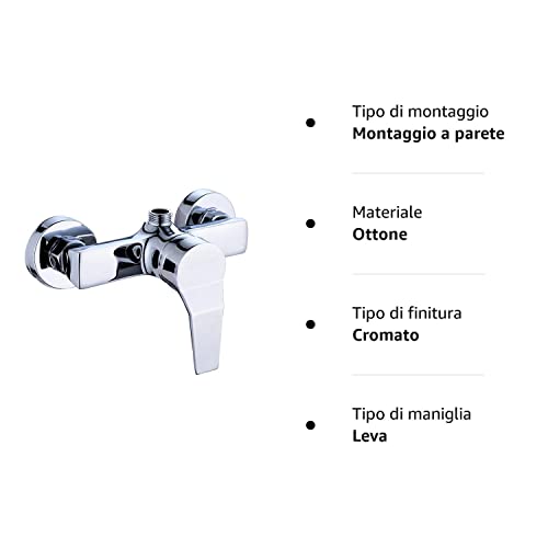 Rubinetto miscelatore doccia a parete in ottone per bagno acqua fredda e calda monocomando cromato